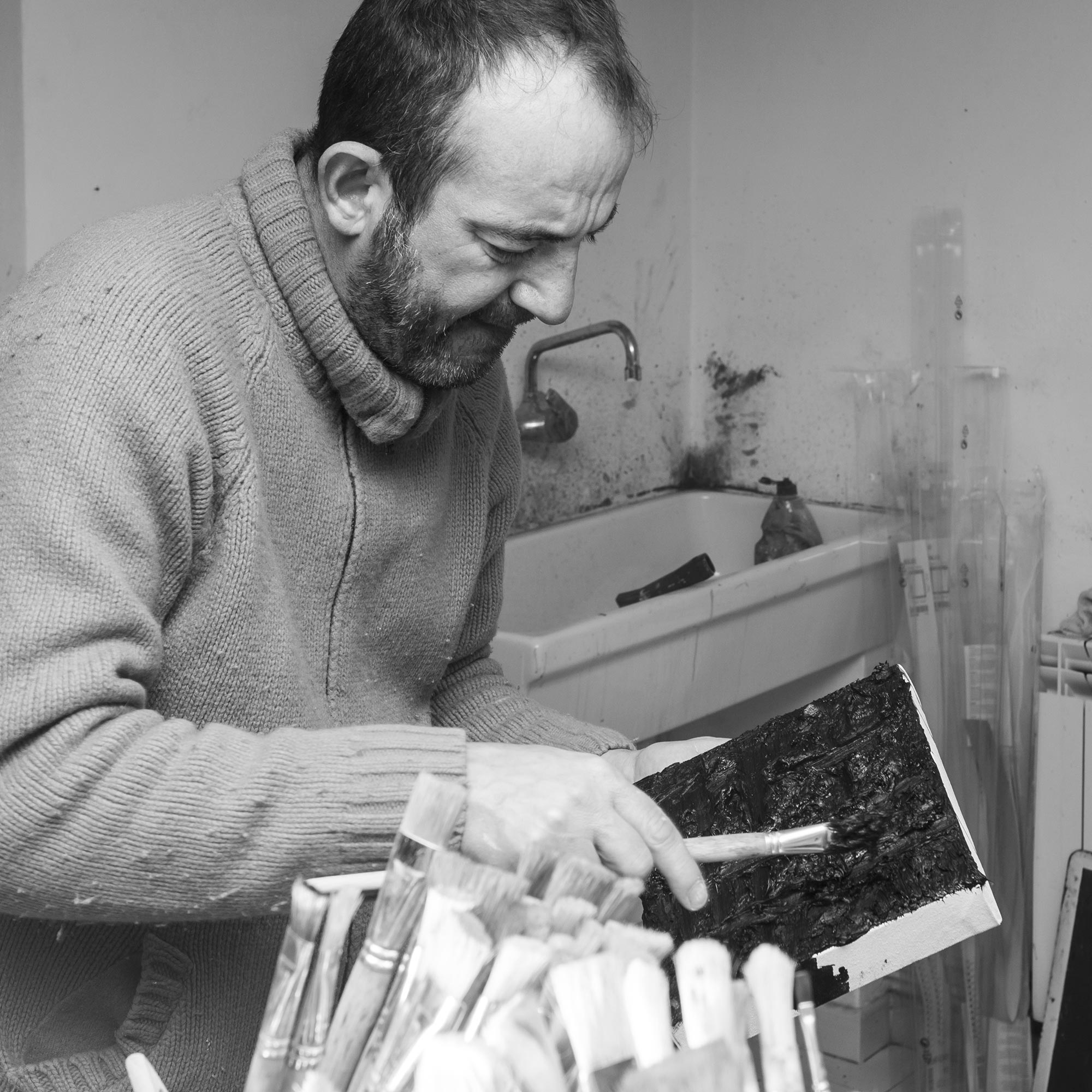 Teo Soriano nació en 1963 en Mérida (Badajoz). Estudió en las Facultades de Bellas Artes de Salamanca y de Pontevedra, y completó su formación asistiendo a diversos talleres en Galicia y Madrid impartidos por artistas como Lucio Muñoz, Rafael Canogar...
