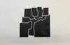 Beltza V, un grabado en madera realizado por Eduardo Chillida (San Sebastián, 1924 - 2002) en 1969, representa su investigación sobre el espacio, la forma y la textura dentro de un formato bidimensional. La obra muestra una serie de figuras negras pronunciadas, organizadas en un equilibrio dinámico entre áreas de presencia y vacío. Aunque Chillida es principalmente reconocido por su trabajo escultórico, aquí traslada su comprensión del volumen y las relaciones espaciales al grabado, logrando una composición que resulta tanto estructurada como orgánica. El título Beltza, que significa “negro” en euskera, refleja la fuerte presencia monocromática y la abstracción que caracterizan la pieza, invitando al espectador a explorar la interacción entre formas y espacios vacíos.